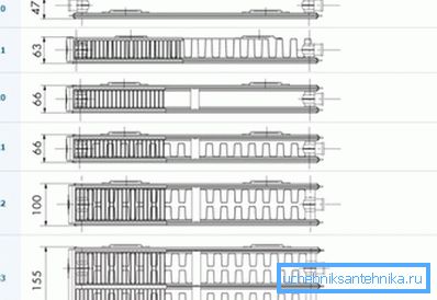Врз основа на бројот на панели и перки, се произведуваат такви модели на радијатори: