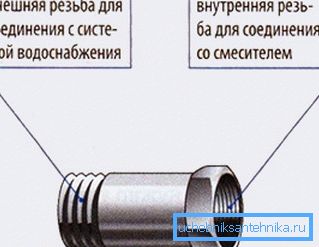 За поставување на мијалници и мијалници, водоводните цевки се поврзани со чешмата со помош на црева, чии краеви се опремени со специјални приклучоци.